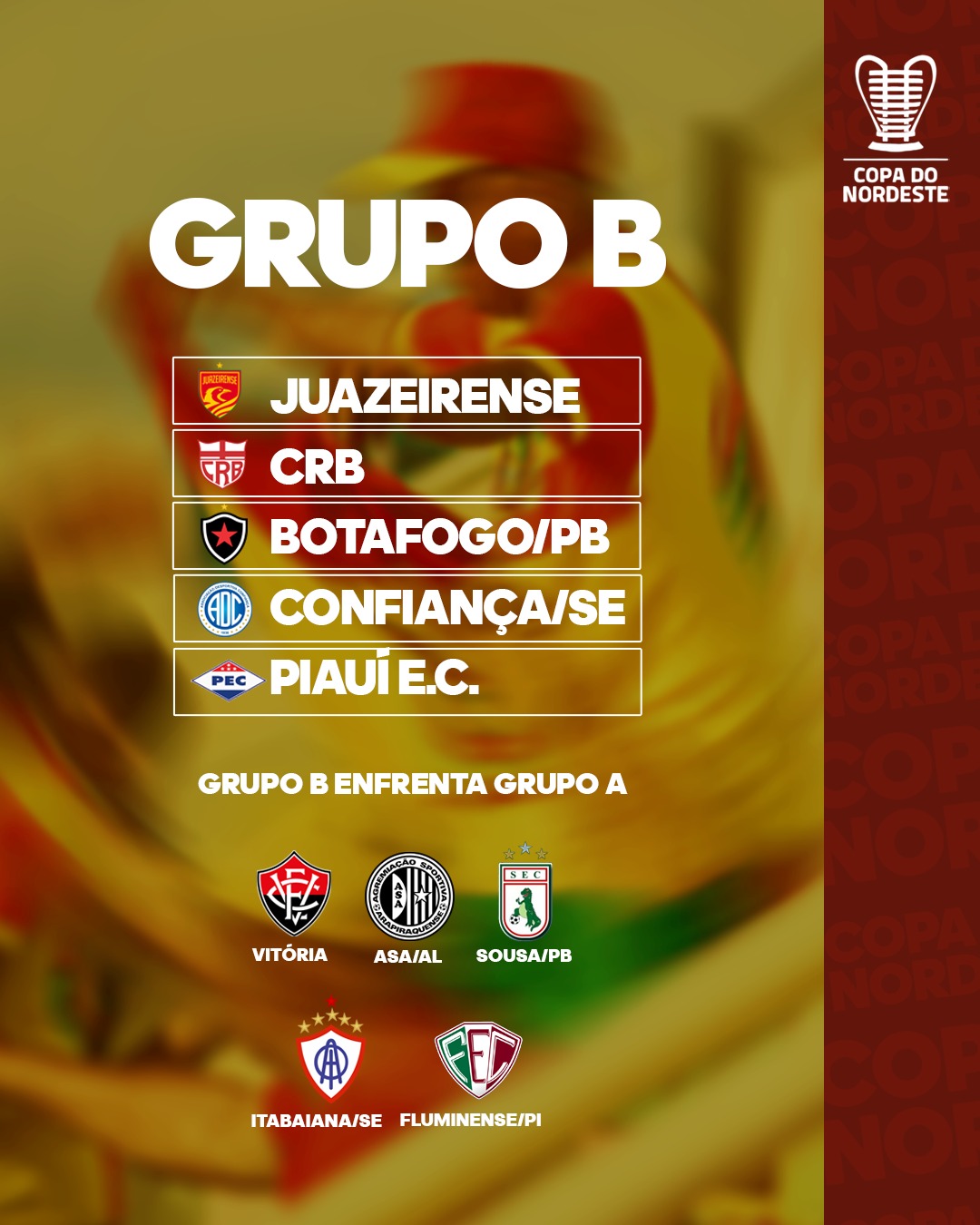 GRUPO B: Juazeirense (BA); CRB (AL); Botafogo (PB); Confiança (SE) e Piauí (PI).